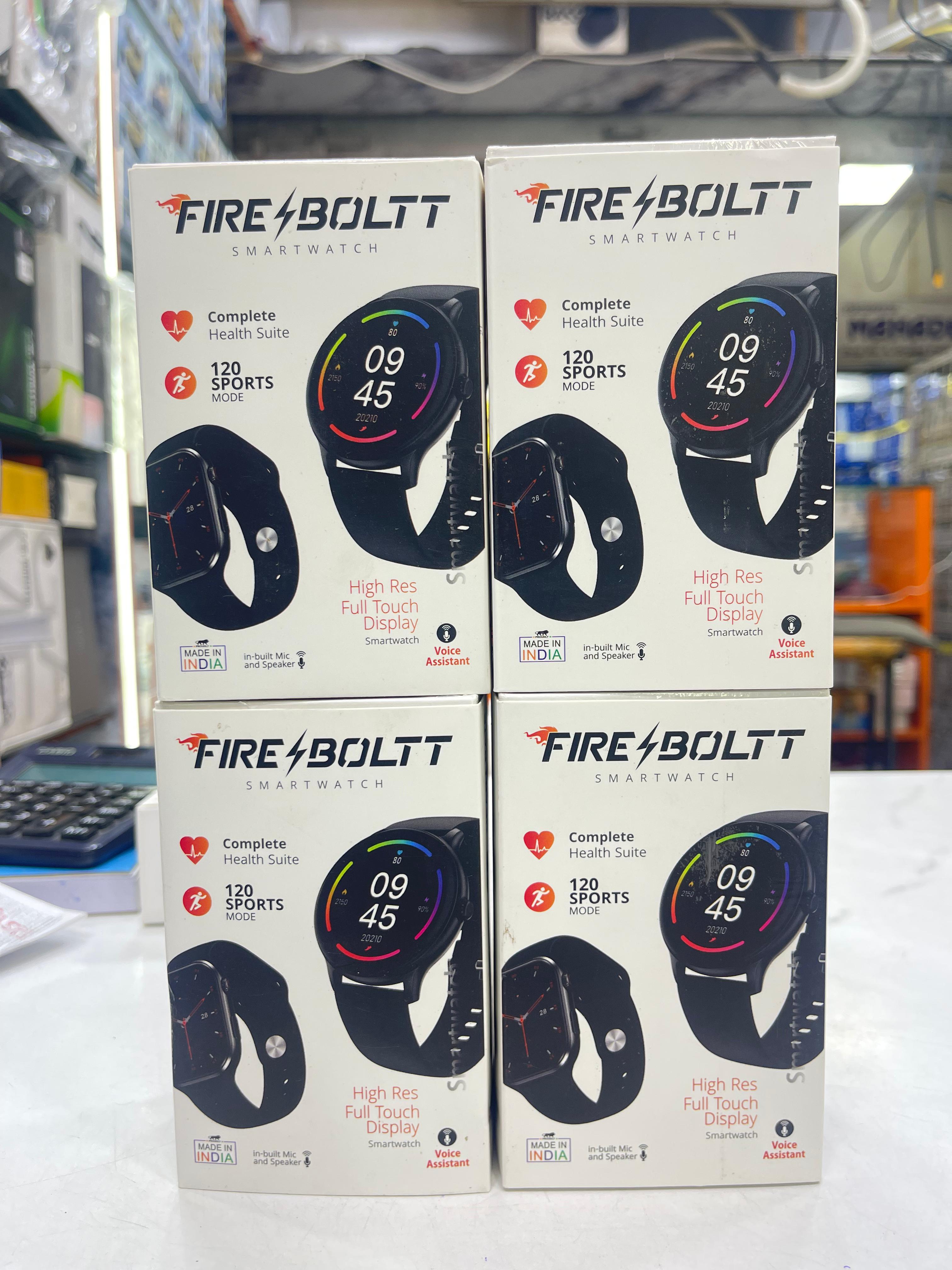 Stylish Fire-Boltt Smartwatch with high-resolution full touch display, Bluetooth calling, in-built mic & speaker, complete health tracking and 120 sports modes. Perfect for fitness, daily use and smart notifications with long battery backup.